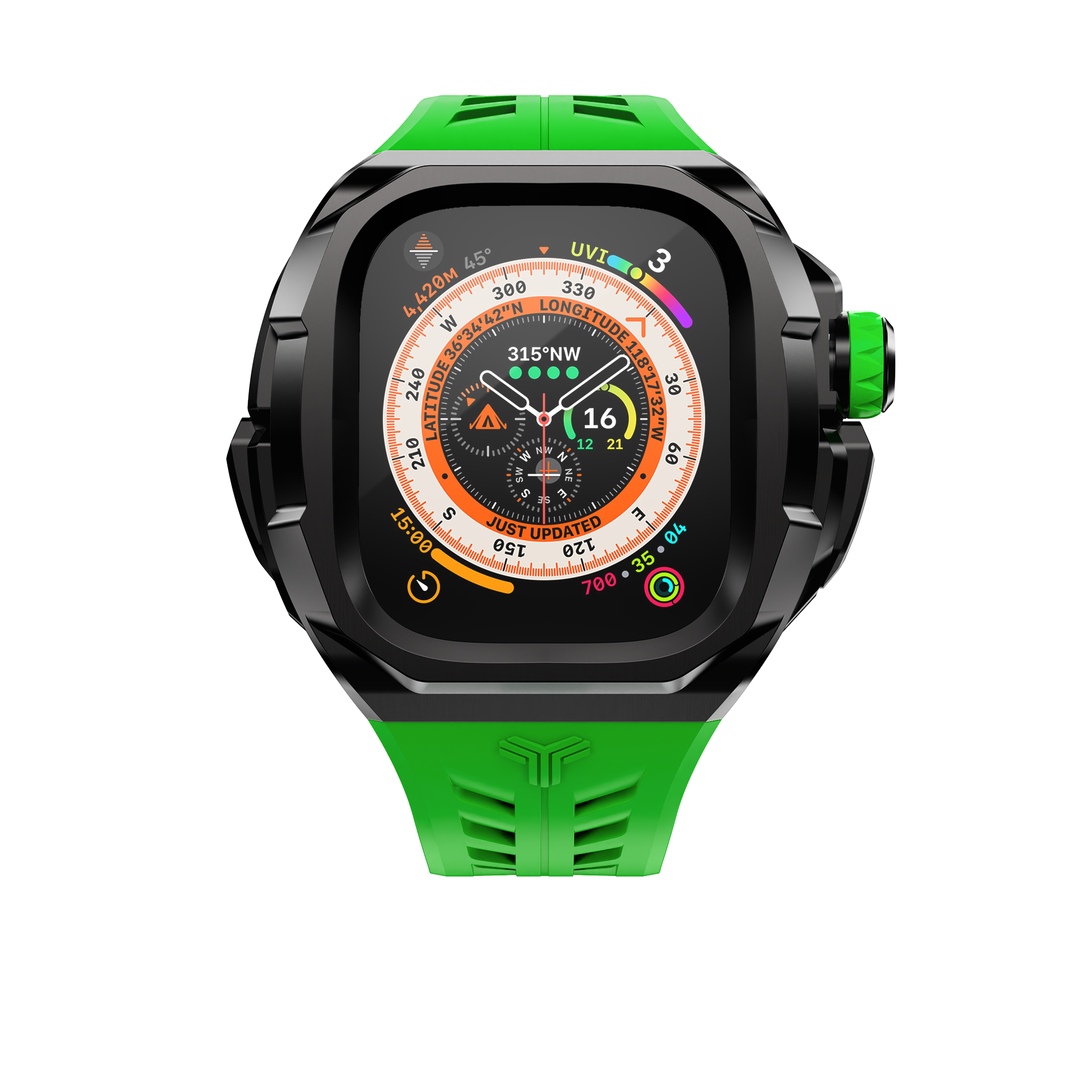 體驗 Pigalle Apple Watch 錶殼 49 mm - Ultra 版的迷人魅力。這款非凡錶殼採用充滿活力的綠色錶帶和時尚的黑色錶圈,散發出活力與精緻的完美平衡。